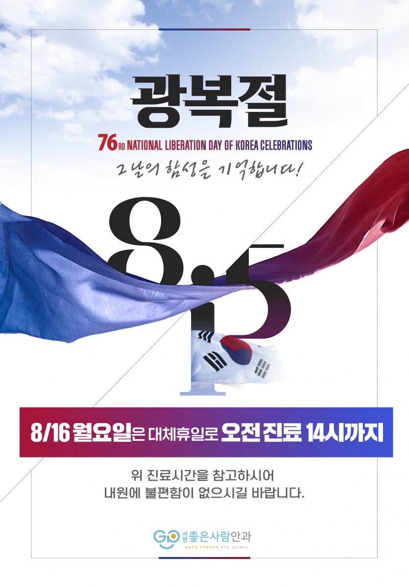 광복절 대체휴일 8월 16일 오전진료 14시까지 입니다.