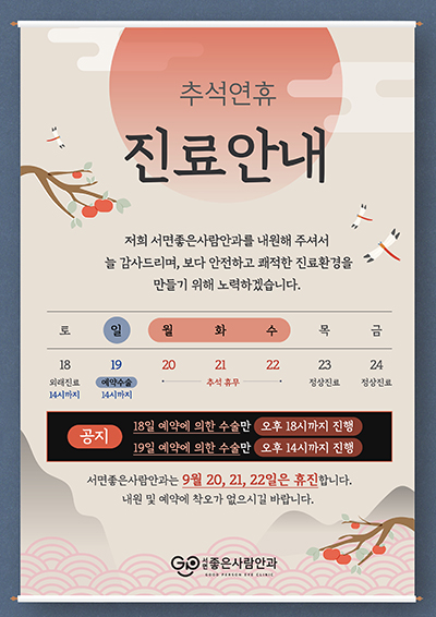추석 연휴 진료 및 수술 안내